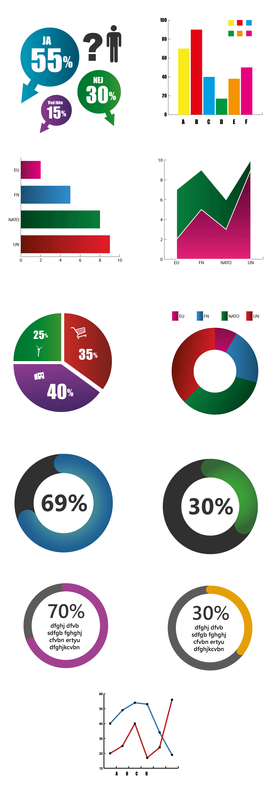 Eksempler på infografik, der kan udarbejdes i Adobe illustrator.